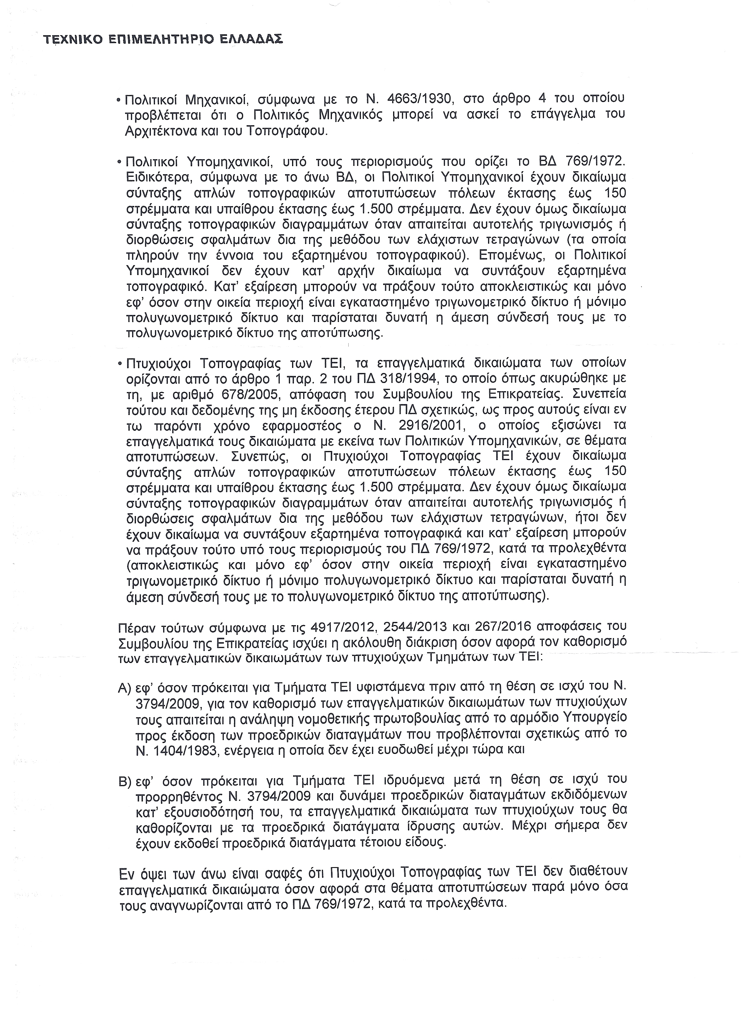Έγγραφο ΤΕΕ σχετικά με το ποίες ειδικότητες μηχανικών έχουν δικαίωμα σύνταξης εξαρτημένου τοπογραφικοπύ διαγράμματος. p1, p2, p3